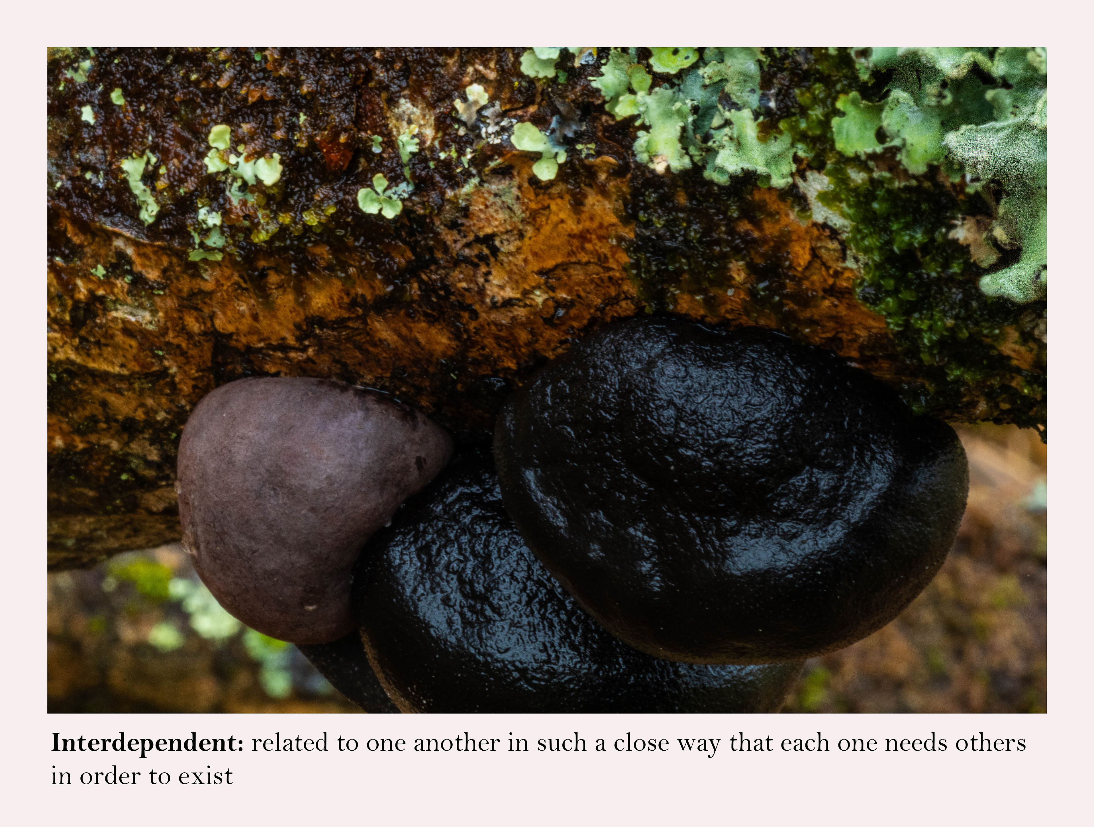 Though humans provoked the concept of the work, they are not evident in the images. The local community often disharmonious and driven by difference, in contrast with the harmonious characteristics the woodland society. Inherent qualities like cooperation, support, diversity, resilience, inclusion, networking, mutual exchange, and adaptation, could be beneficially adopted in many human communities.